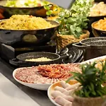 Gæsterne kan nyde deres morgenmåltid på restauranten. Culinaire Bazaar serverer franske retter.